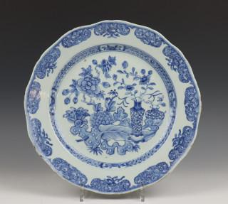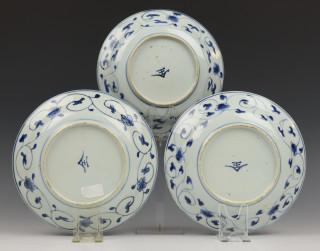 China, blauw-wit porseleinen bord en serie van drie borden, 18e eeuw