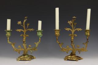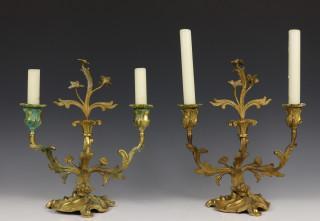 Frankrijk, paar verguld bronzen tweelichts kandelabers in Rococo stijl, 19e eeuw,