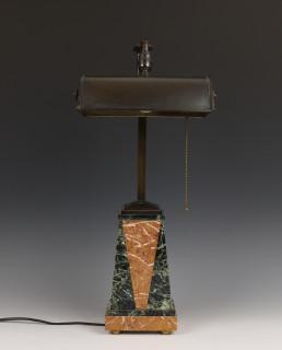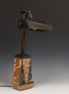 Marmeren bureaulamp met gebronsde kap, Art Deco,