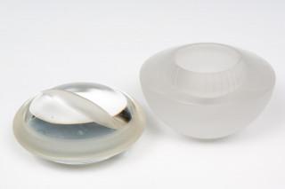 Barbara Nanning (geb. 1957), twee glazen beursobjecten, 1995 en 2003.