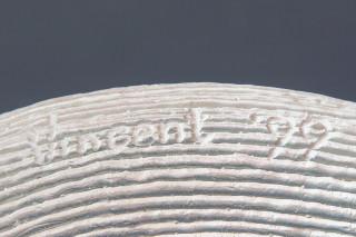 Uitgevoerd door Royal Leerdam Crystal, meesterblazer Henk Verwey. Gesigneerd 250-87 V.G. 1999. Hierbij glazen sculptuur "Geode". Gesigneerd Vincent 99