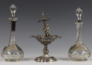Oostenrijk-Hongarije coupe met houder en paar flacons met zilveren montuur, 19e eeuw,