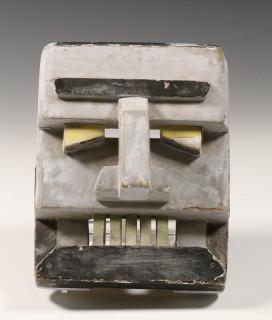 European cubist polychromed mask; slanting eyes, prominent teeth and protruding nose, 20th century