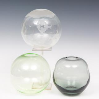 Leerdam, A.D. Copier (1901-1991), drie glazen bolvazen, 1928.