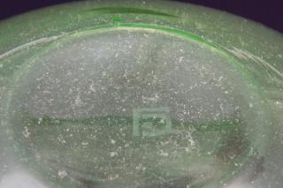 Eén met geëtst decor van vissen, één Annagroen en één ingesnoerd van vorm. Alle met geëtst monogram