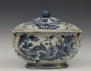 w.o. wit ronde terrine Petrus Regout, Adam " Titian Ware' e. a.