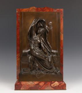 Henri Chapu (1833-1891), bruin gepatineerd bronzen relief, 19e eeuw,
