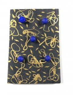 op de zwart geoxideerde en geruwde ondergrond zijn gewalste 24krt. gouden draden gelast. Door het lassen oxideert 18krt. goud en wordt zwart, 24krt. goud oxideerd niet. Versierd met vijf blauw geverfde parels (reparaties). Achterzijde gesigneerd, Robert Smit '92. Met etui