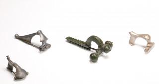 Roman, three silver zwiebel-knopf fibulae and one bronze button fibula, 1-3e century