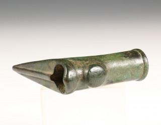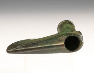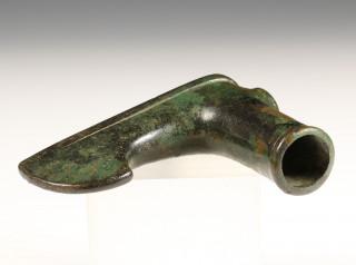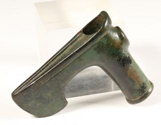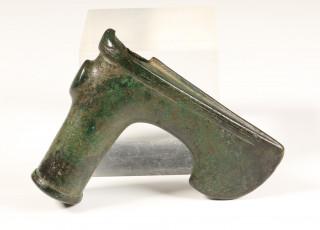 Luristan, bronze axehead, green and black patinated, 1st mill. BC