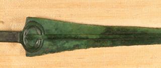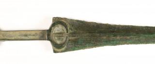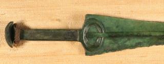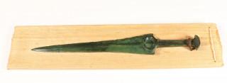 Ancient Near East, bronze Amlash sword with oval-shaped decoration, the grip once with inlay, 13-10th century BC.