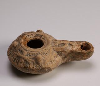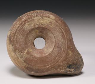 A Greek terracotta round oil lamp, 5th century BC and a Hellenistic oil lamp, 3rd-1st century BC