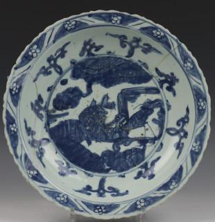 China, blauw-wit porseleinen schotel, Ming-dynastie,
