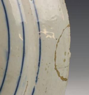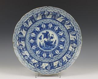 Delft, blauw-wit aardewerk schotel, met blauw AK merk, mogelijk voor Adrianus Kocx, ca. 1700,