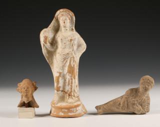 South Italy, Greek statue of Demeter, 4th-3rd century BC and Etruscan terracotta of funeral figure, 5th-4th century BC.