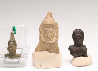 Roman terracotta buste of a man with beard, 1st-2nd century and a bronze buste of a bearded man, Attic period, 3rd century BC and a Celtic bronze buste, ca. 1st century BC.