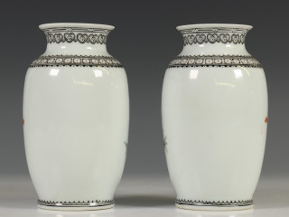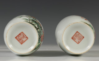 China, paar kleine famille rose vaasjes, 20e eeuw,