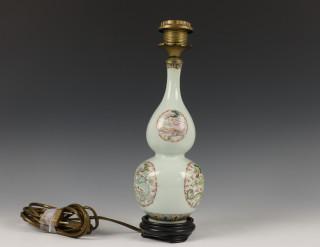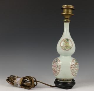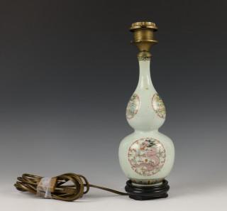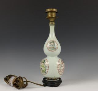 China, famille rose porseleinen kalebasvaas gemonteerd als lamp, 19e-20e eeuw,