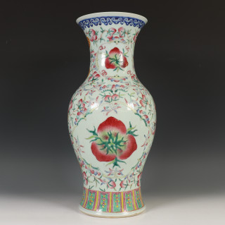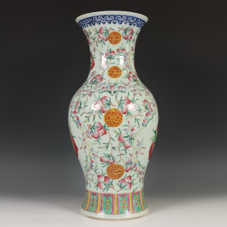 China, famille rose baluster vase, 20th century, decorated with peach and 'shou' symbols