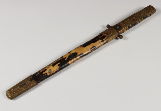 Met schildpad greep en schede waarop verguld bronzen beslag en teksten. Werd verkregen bij slagen voor de militaire academie, 3e jaar