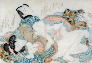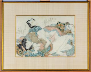 Een geisha aan het werk op de Sumida rivier. uit een serie van 12, te dateren ca. 1828. Lit.: Uhlenbeck en Winkel: Japanese Erotic Fantasies pag. 172