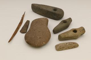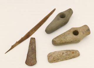 A collection of five antique stone axes, some 5th Mill BC.
