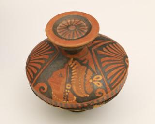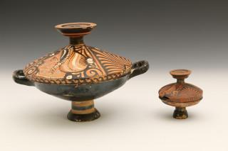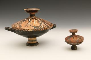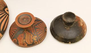 Two Greek Apulian earthenware lidded pots, ca. 4th century BC.
