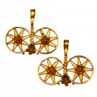 Indonesia, Sumatra, South Nias, pair of 9-14 carat golden ear pendants, ca 1900