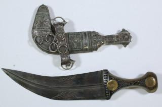 Jemen, two metal and silver alloy jambyia, one with a decorated shaft