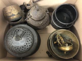 India and Africa, a collection of metal and copper alloy bowls and lidded boxes