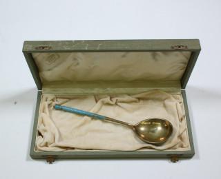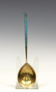 Russian gilded silver and cloissoné spoon, dated 1896.