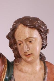 voorstellende een vrouw met in lauwerkrans in haar hand, met (latere) polychroom schildering, op gemarmerde basis.
