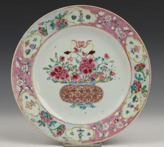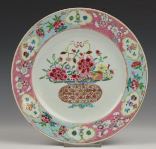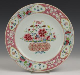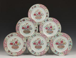 China, serie van zes famille rose borden, 18e eeuw,, vroeg Qianlong,