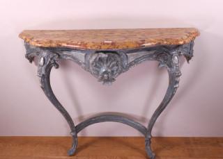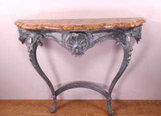 Blauw-grijs gelakt houten consoletafel in Louis XV-stijl, 19e eeuw,