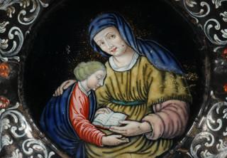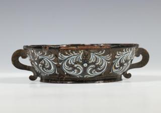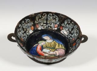 Limoges, a two handled enamel bowl with scene of Anne Malzac De La Sale. Attributed to Jacques II Laudin, late 17th century.