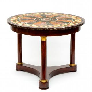 Mahogany 19th century table with a 19th century pietra dura marble top.