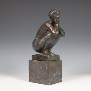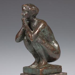 Hurkende dame. Op losse marmeren voet