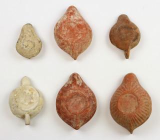 relief and one small oil lamp, 2-3e AD. Herewith on white terracotta oillamp with relief decorations possibly of a later date.