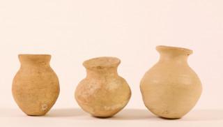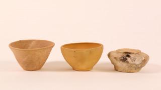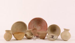 Collection of various archaeological objects; a terra sigillata dish, one jar and a small female head with elaborate hairdo, late Roman period. Herewith various terracotta objects, possibly antique.