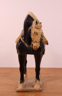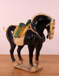 Zwart paard met zadel (benen gebroken en gelijmd)
