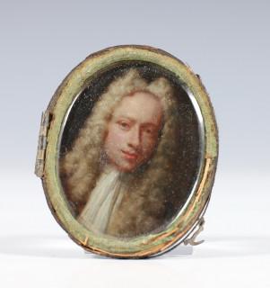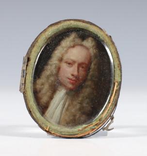 voorstellende een heer met een hoge, lange pruik. Gemonteerd in een incompleet segrijn foedraal.