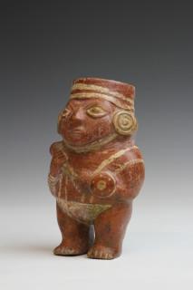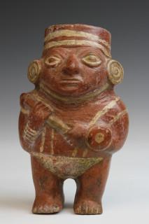 Peru, Moche, a painted terracotta figure cup, 100-750