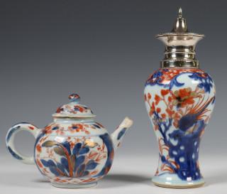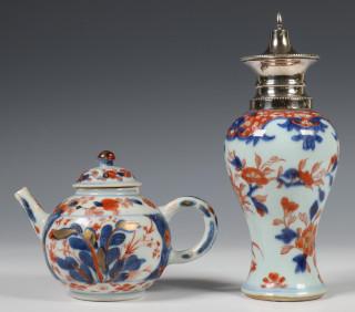 China, an Imari teapot and a silver-mounted vase, Kangxi (the teapot damaged and repaired)