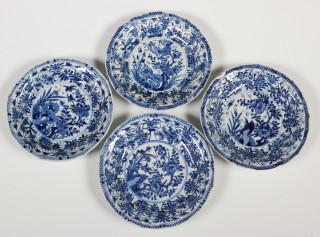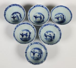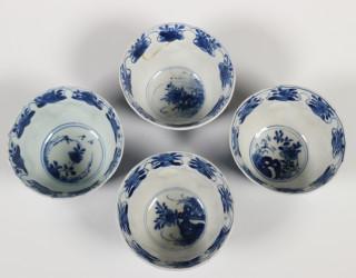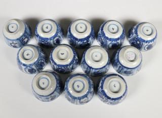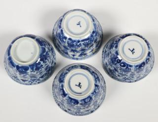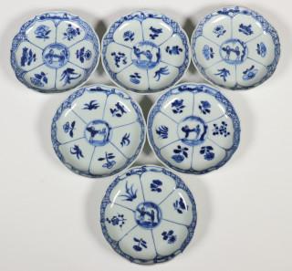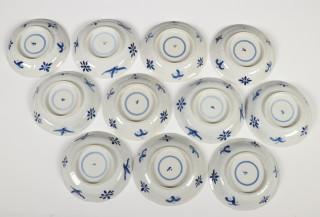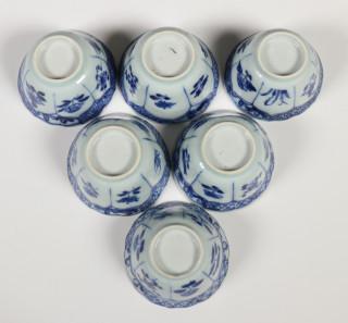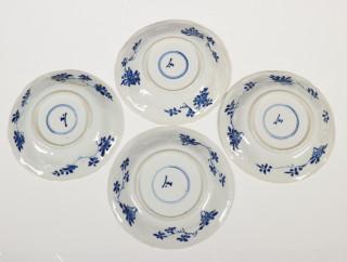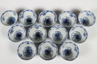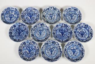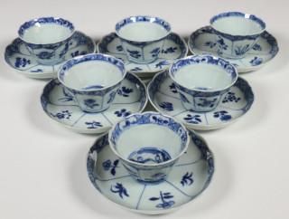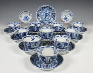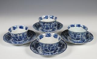 China, drie sets blauw-wit porseleinen koppen en schotels, Kangxi en later,