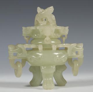 China, een celadon jade archaïstische wierookbrander, 20e eeuw,