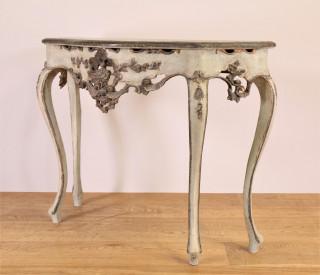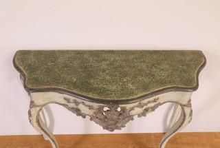 Groen gelakt grenenhouten consoletafel in Louis XV-stijl, 19e eeuw,