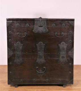 China, bruin gebeitst houten kist-kast, laat 19e eeuw,