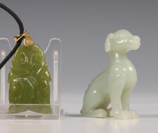China, een jade figuur van een hond en een jade perzikhanger, modern,