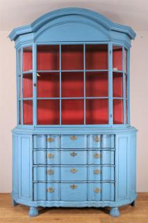 Blauw gelakt grenenhouten porseleinkast, 18e eeuw,