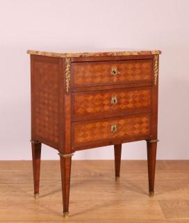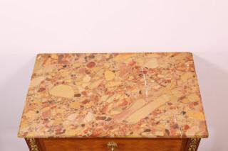 met 'brèche d' alep' marmeren blad en drie laden. Het geheel versierd met parqueterie